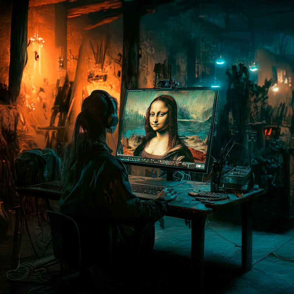 Si muove fluida tra reale e digitale, tra metaverso e strade, tra gallerie e spazi alternativi, portando conoscenza e visione ovunque ci sia terreno fertile per immaginare il futuro. Non un’etichetta, ma un viaggio nel cyberspazio con in sottofondo una base synthwave.