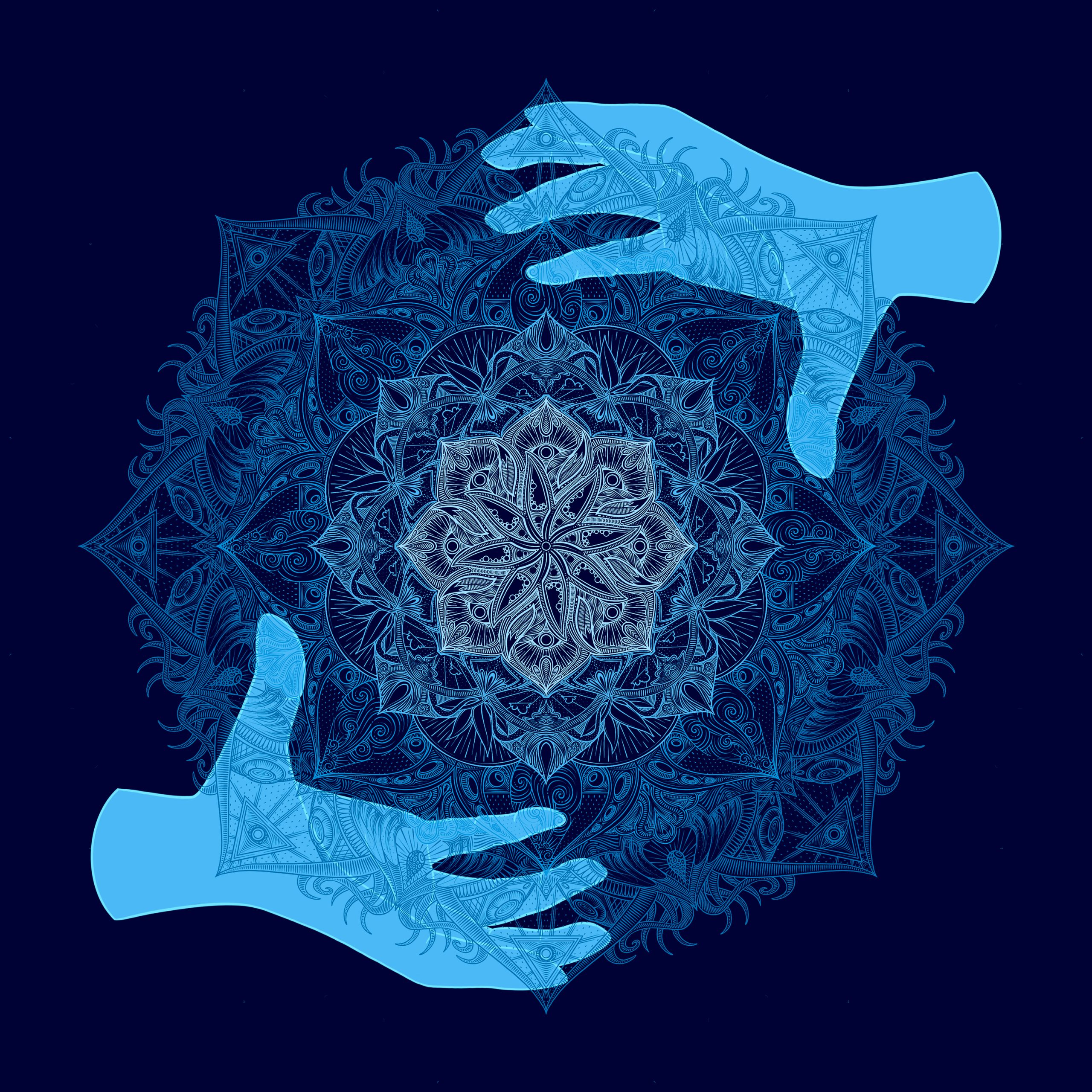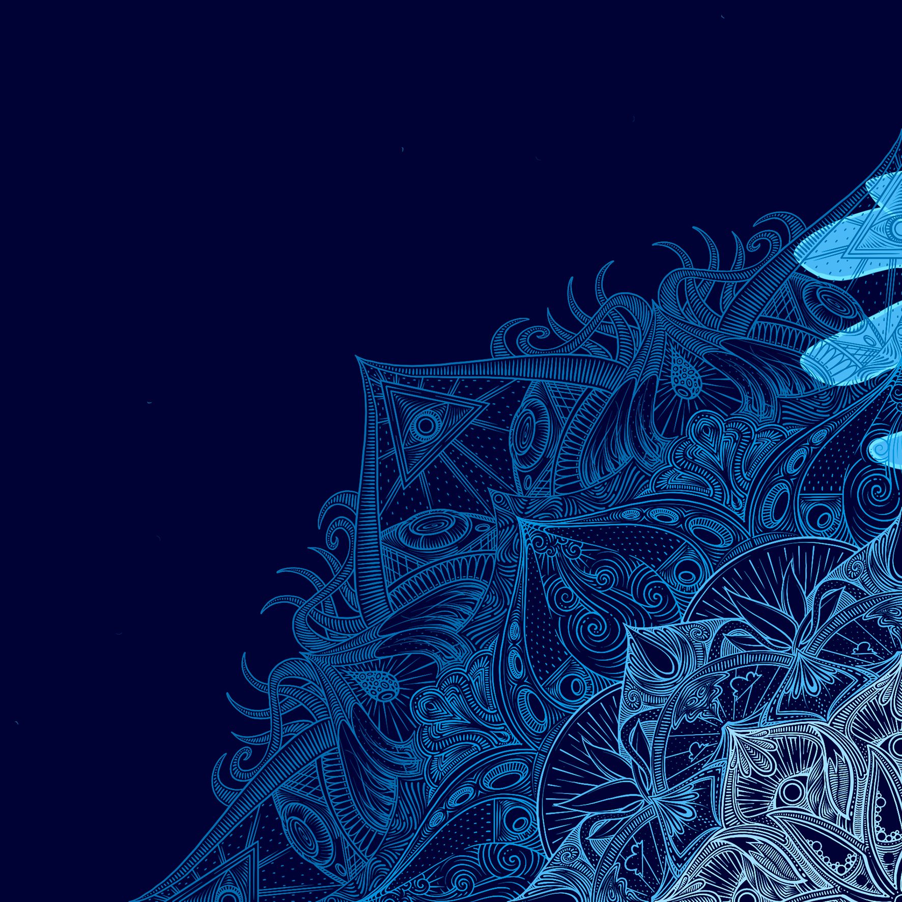 Mandalarian. Ricercatore spirituale che fonde simboli ancestrali e contemporaneità digitale. Maschere e mandala diventano immagini ipnotiche, unendo natura e geometria sacra. È il lato meditativo del collettivo, esperienza contemplativa e rituale.