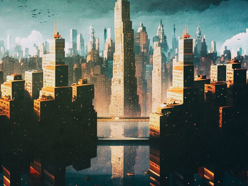 In NewYork 2050, la città simbolo del progresso galleggia su un futuro allagato. Le acque hanno invaso le strade, trasformando l’asfalto in specchi silenziosi, dove i grattacieli si riflettono come monumenti a un’umanità che ha perso il controllo.